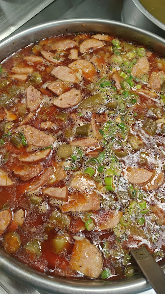 Cajun recipe. Tender crawfish, sausage, rice, vegetables and fresh herbs in a spicy Creole flavored seafood sauce.